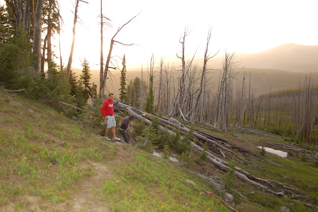On Day 6, we started out going back to Grand Prismatic Spring. Unfortunately, with all of the steam coming off of the vernal pool, we could barely see anything! The temperatures in these pools and springs are exceptionally hot - the bacteria that thrive in these temperatures are what cause the gorgeous coloring. But, if it's real cold and windy, the steam just blows all over the place. After the spring, we drove towards the lake, and took in Fishing Bridge (that you can't actually fish off of) as well as some of Hayden Valley. We did a short hike to Natural Bridge and saw the most sulfurous geysers in the park... it smelled horrendous!